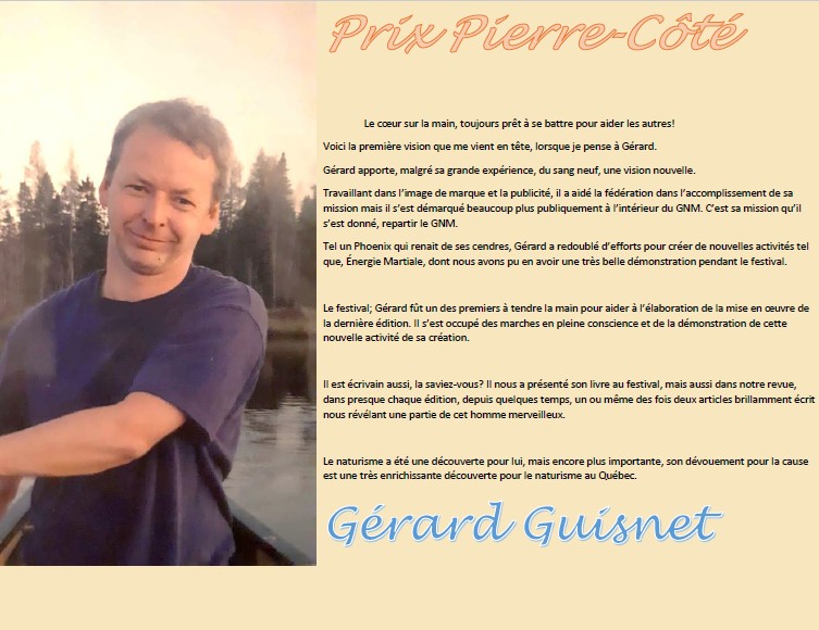 Le naturisme a été une découverte pour lui mais encore plus importante son dévouement pour la cause est une très enrichissante découvert pour le naturisme au Québec.